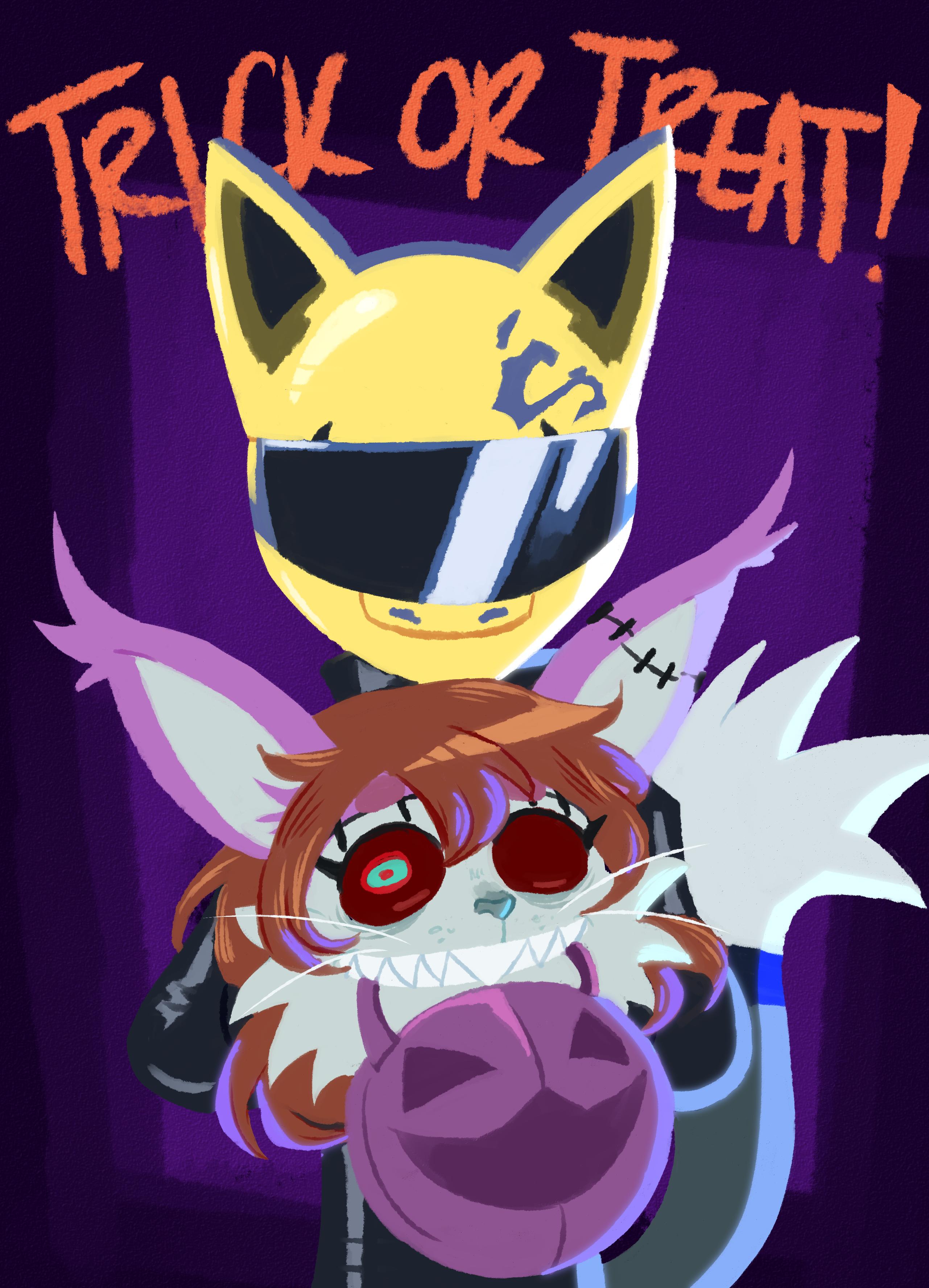 Happy Halloween!!! I drew a (1) thing. Jayei and Cordy went trick or treating with Albert’s [term for a family member] (I only drew this character once and I don’t remember how he’s related, time to maybe retcon with something. lol).