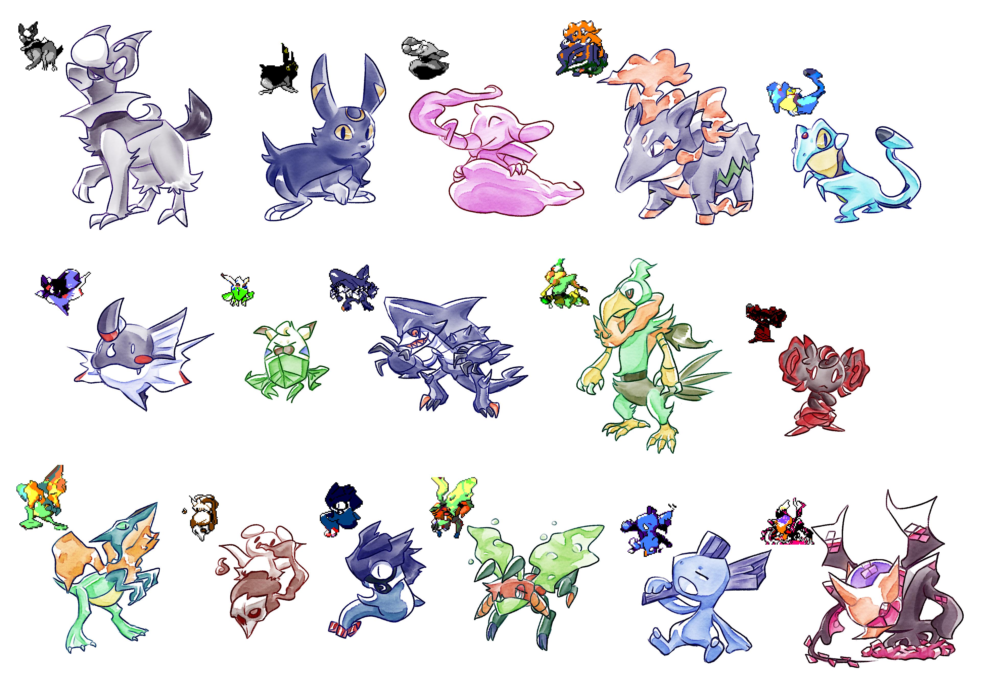 I think the most of them would need more tweaks to actually look like Pokemon, but this was fun to do!