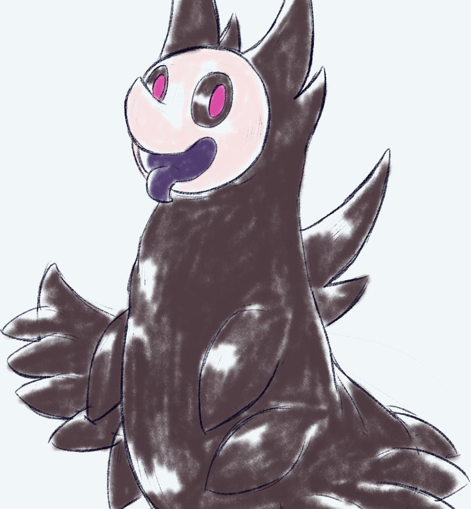 Its design is based off of some toy-thing I saw in a dream (might not a 1:1 recreation of it but the face and body shape is right). So it’s technically not based off of any animal but I guess it’s somewhat similar to sea slugs (I also noticed it has some similarities with Gastrodon. oops).