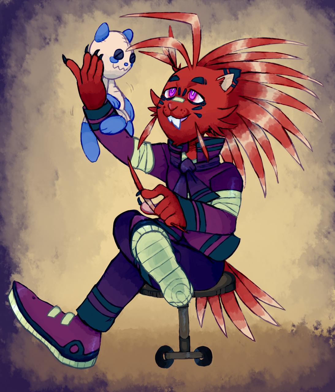 A character for a thing! Their name is Jaeger Darning, they’re a somewhat venomous (although they don’t have a poison immunity) porcupine who likes to make (and mess with) voodoo dolls.
