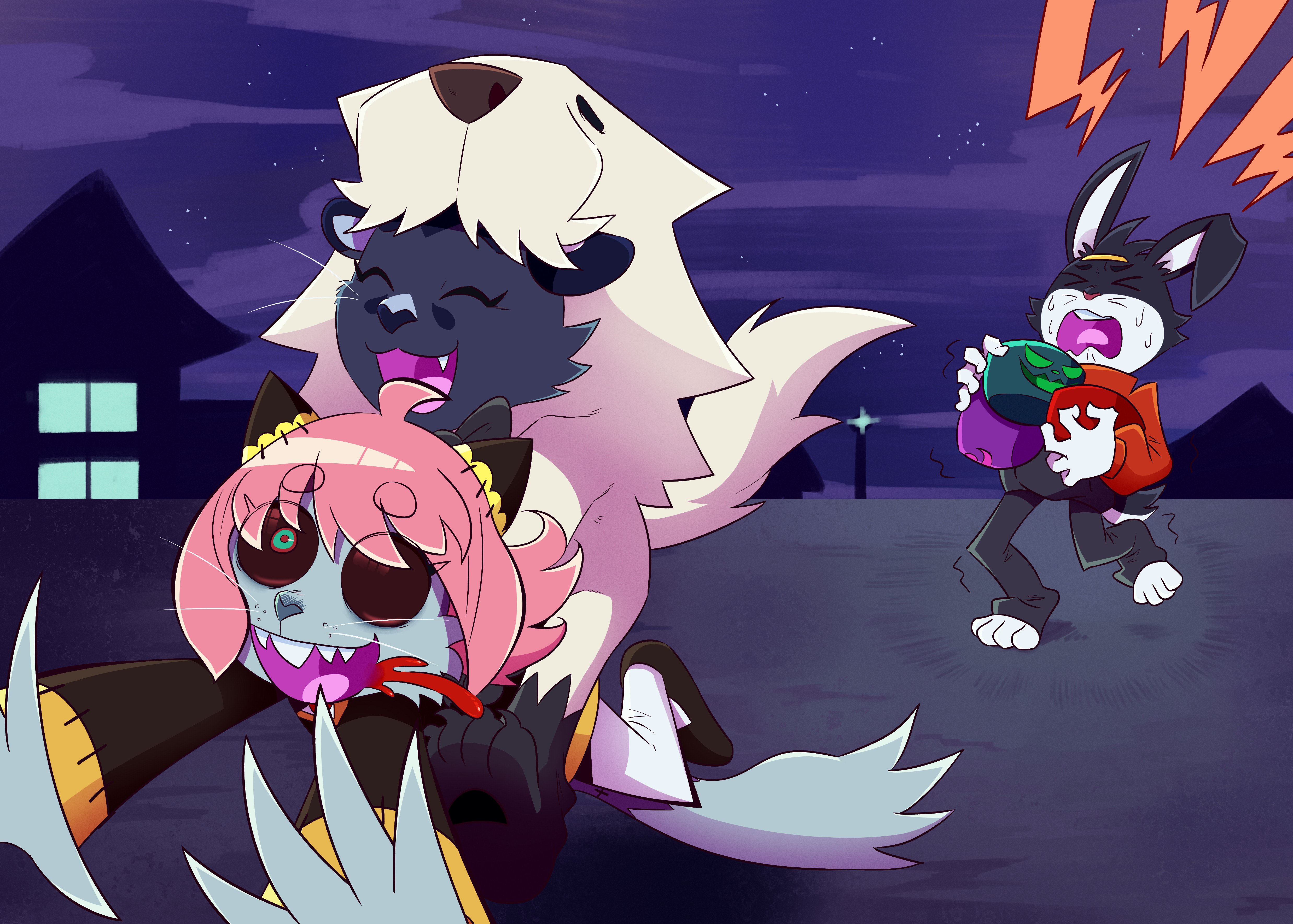 Happy Halloween!!! I drew a (1) thing. Jayei and Cordy went trick or treating with Albert’s [term for a family member] (I only drew this character once and I don’t remember how he’s related, time to maybe retcon with something. lol).