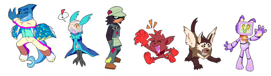 PrizmaStar (Twitter), iffondrel (Twitter), AtomicPumpkin (Twitter), tigersonalex (Twitter), Dreamly (Art Fight), and @eudaemonix!