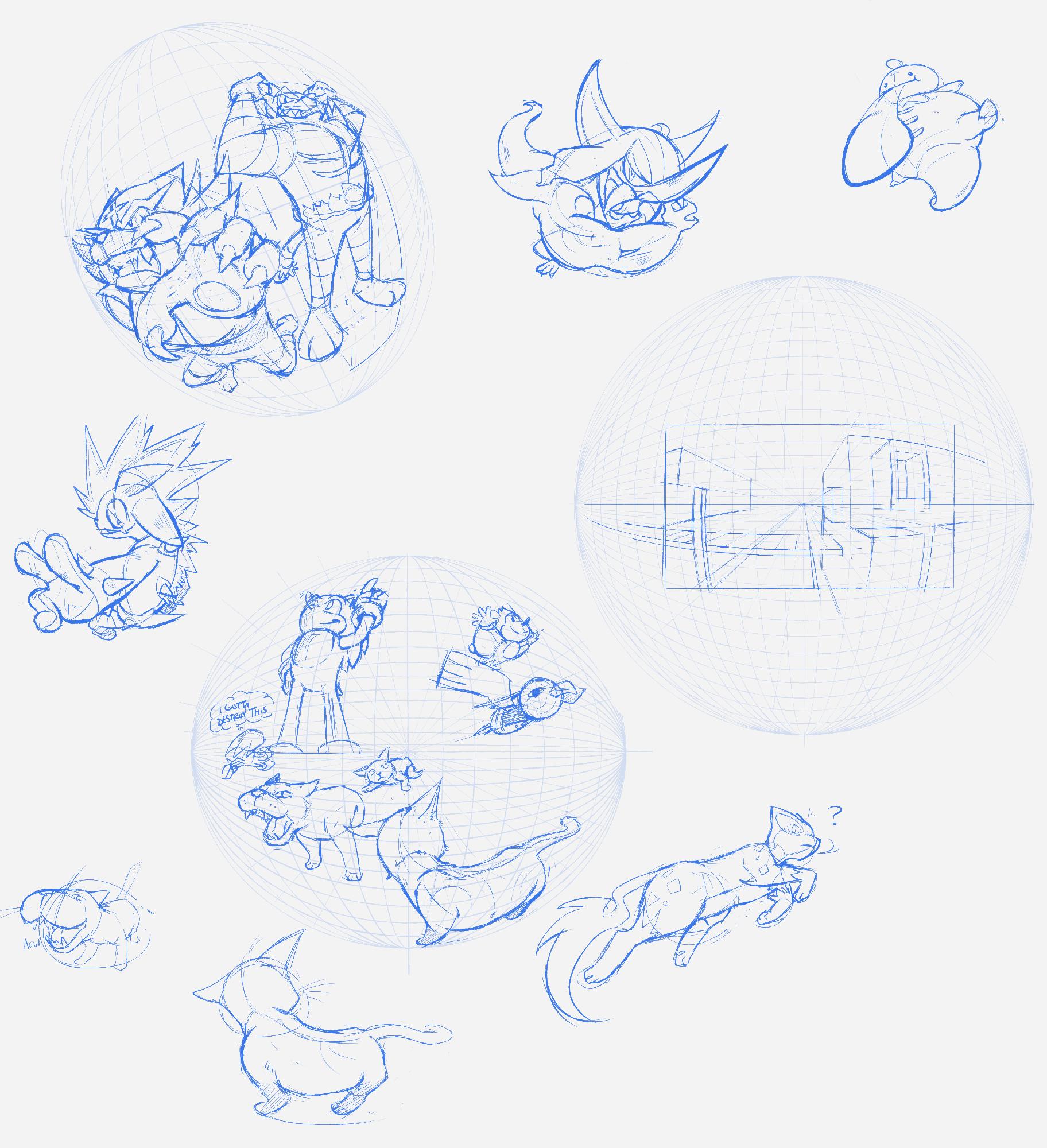 Was practicing 5 point perspective/dynamic character drawings, so here’s the doodles from that, why not.