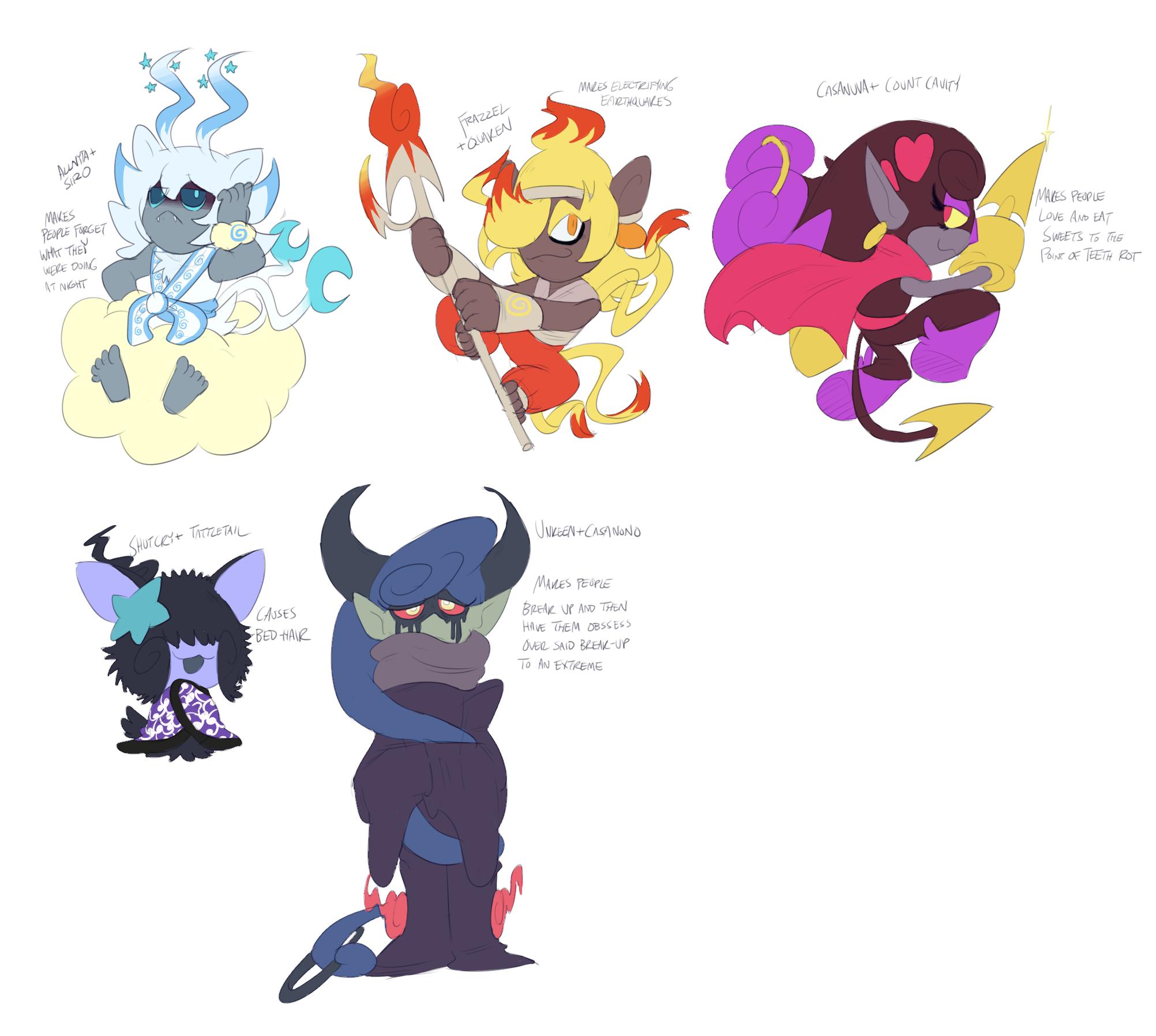 Yokai fusions suggested by @4-of-a-kind, I couldn’t think of names so nyeh. :P
